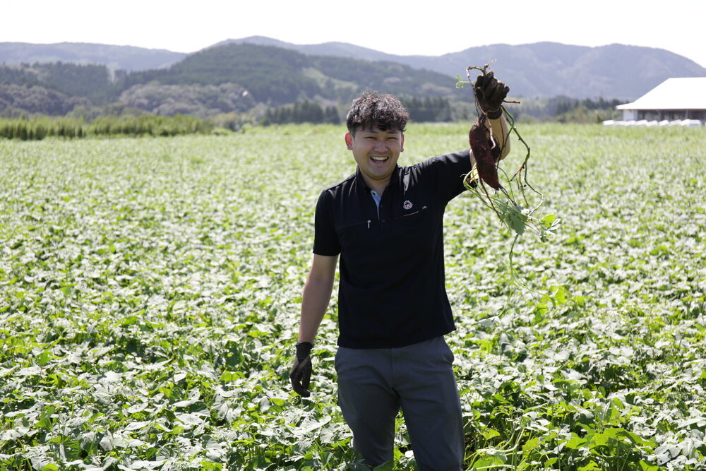 宮崎県の最南端に位置する串間市。そこで、さつまいもの生産、加工、貯蔵、輸出などを一手に担っているのが「くしまアオイファーム」です。さつまいもの取扱量、取扱品種数、海外への輸出量は、日本国内では最大規模を誇ります。色々な品種のさつまいものブランディングも手掛けており、こだわりの栽培と貯蔵技術により美味しいさつまいもをお届けしています。