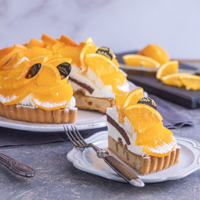 愛媛県産の濃厚な風味ととろけるような果肉の味わいで希少価値の高い「紅まどんな」を使用したタルト。くるみ・オレンジ・シナモンなどのスパイス感じるタルト生地になめらかなマスカルポーネクリームといちじくを重ねたシュトーレンをイメージしたタルトです。