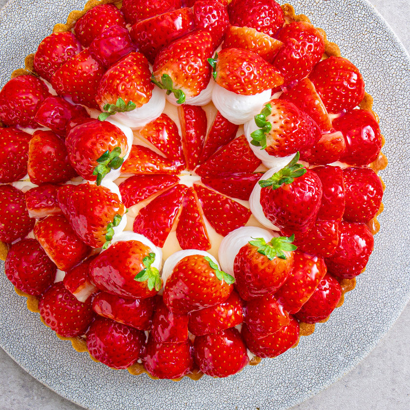 しっとりとしたケークタルトに優しい甘さのディプロマットクリームと甘酸っぱいいちごジャムをしのばせました。みずみずしく、コクのある甘みの伊豆HOLLY'S紅ほっぺを贅沢に使用したタルトです。