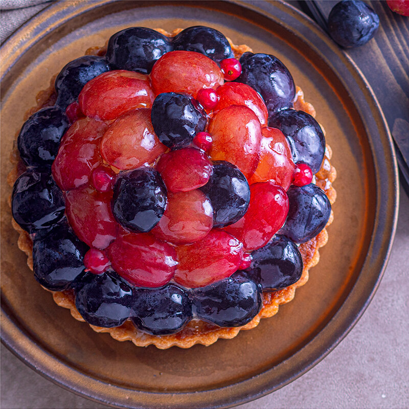 今回ご紹介するのは、オンラインショップ限定、長野県・大月農園のぶどうを惜しみなく使用した「クイーンルージュとナガノパープルのタルト」です。