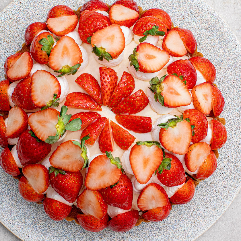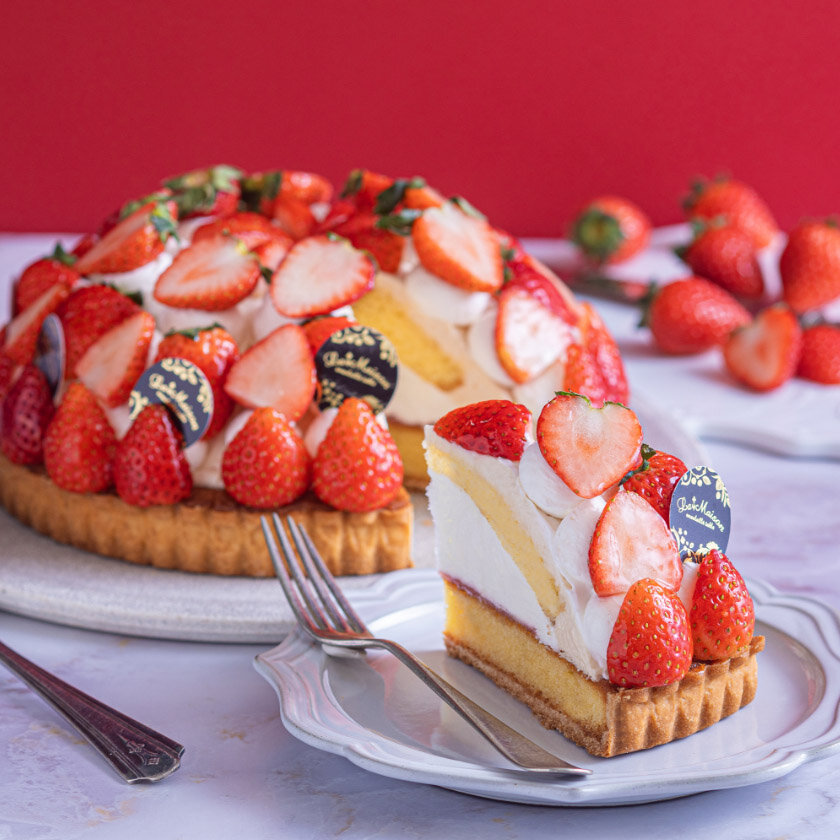 しっとりとしたケークタルトに、甘酸っぱいいちごジャムとなめらかなストロベリーカスタードクリームを重ねました。埼玉県産のあまりんを贅沢に使用したタルトです。